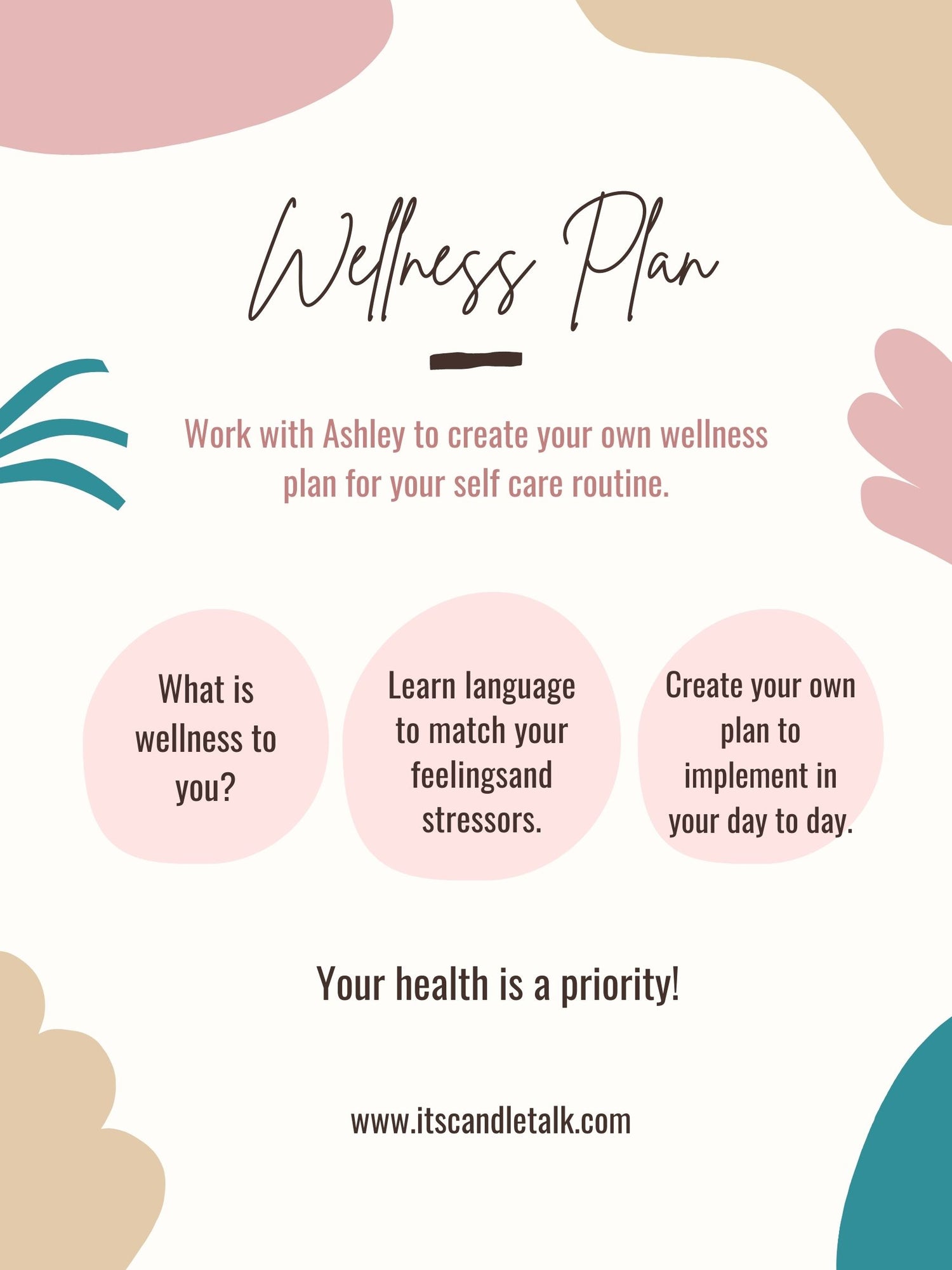 What is wellness to you? If you are you interested in dealing with your own wellness, creating a wellness plan is best! Join this one on one 60 minute session with Mental Health Professional Ashley to define, and create a system that works for you to intertwine with your current mental health and self care needs. Please complete contact form below to start! Also available to groups and organizations.