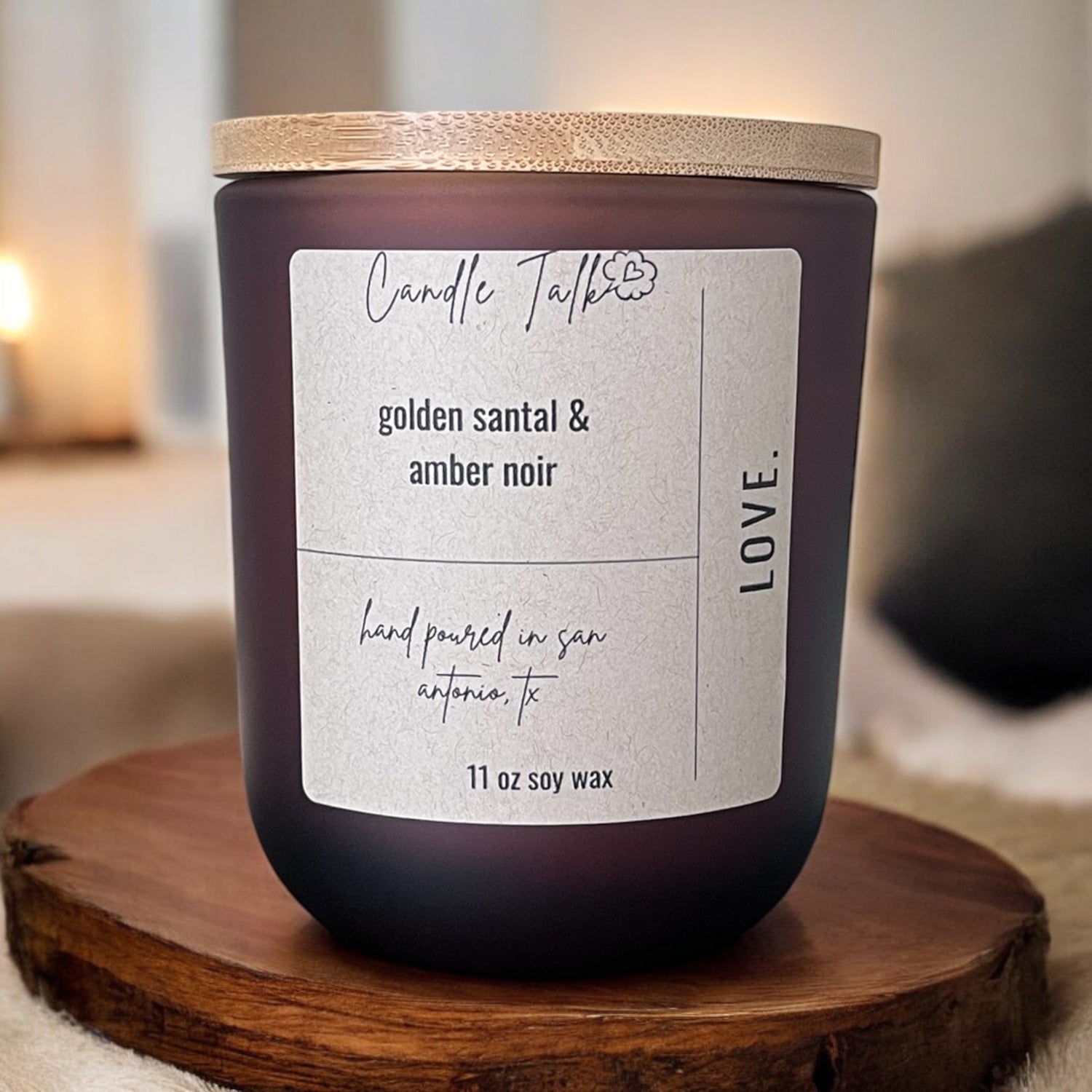 When we cannot see further than our circumstances, when we feel there is no good coming, we must remember that love conquers all. Allow the notes of amber and golden santal intertwine and bring a sense of comfort to your mood and space.